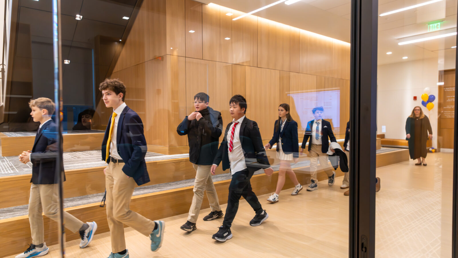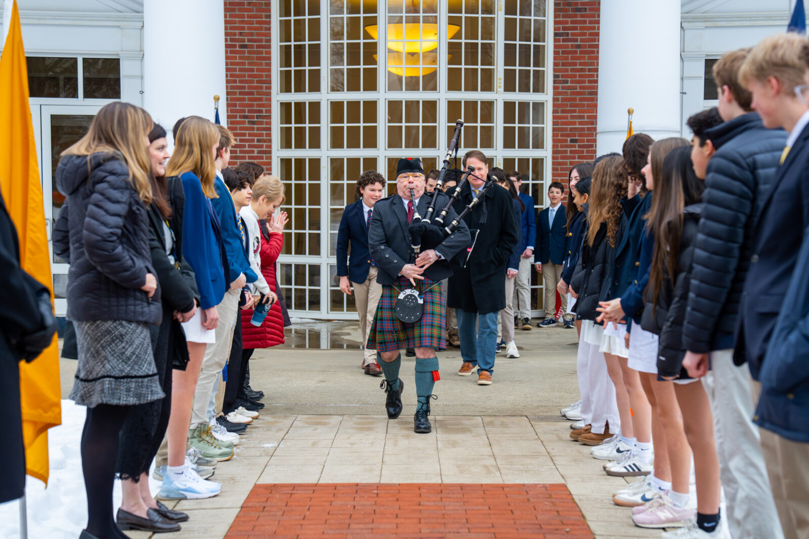 January 6, 2026 marked the first day for Shady Side Academy students at the new Rockwell Middle School. With older students lining the path, the middle school students walked across the quad in ceremony, led by bagpipes sounding off their triumphant bleat.